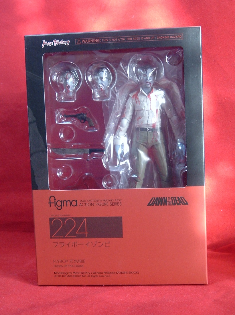 連休です。 実家の実母が先日「誕生日」だったので、倅たちと一緒に飯を喰いに出掛けました(娘はアルバイトで欠席)。 目的地の隣の大型商業施設(元勤め先)で車椅子を借り、それに実母を乗せ店内で買い物。 車椅子には当然『シルバ-ブレッド』と名付け、全員の首に「大蒜」をかけるのを忘れない。 その車椅子の別名こそは『マキシマム・オーバー・ドライブ』! その後お隣の少し高級な「回転寿司屋」で昼間っから「家族大酒盛大会」。 家族で生ジョッキ6杯、熱燗大徳利4本空けて大盛り上がり。 良いコンコロ持ちで帰宅すると、またまた私宛の「宅配荷物」が。 ネットショップで某ポイントを駆使し格安で入手したブツとは 『figma ゾンビ フライボーイゾンビ((ノンスケール 塗装済み可動フィギュア)』 •ゾンビ特有の肌の色を完全再現。 •スムーズ且つキチッと決まるfigmaオリジナル関節パーツで、独特のゾンビアクションが可能。 •「通常頭部」、「血しぶきエフェクト」がついた「ダメージ頭部」の他、劇中で印象的な「マチェーテゾンビ」の頭部が付属。 •「血しぶきエフェクト」は取り外し可能になっており、手足などに付ける事で、ちぎれた手足を再現する事ができる。 映画『ゾンビ(DOTD)』の「フライボーイ(スティーブン)」の正式フィギュア化(ガレージキット除く)は、私の知る限り第三作目。 一作目は今は亡き「レッズ」から発売されたカルトシネマコレクションの「”ゾンビ”シリーズ」。 アクショントイ色の濃いフィギュア黎明期の往年の名作。 私ゃコレ、大阪ミナミの某ディスカウントショップで一個100円で四セットコンプリートしたときゃ狂喜乱舞したよ。 フィギュア本体よりも「ベース(台)」の方がシブいという変わり種。 二作目は「ネカ・カルトクラシックスシリーズ」の『FLAYBOY』。 同時に発売された『クリシュナゾンビ』にマニア狂喜乱舞♪ で、最新三作目のマックスファクトリー製『フライボーイゾンビ』。 可動範囲や血飛沫エフェクトパーツなどが付属して、遊び甲斐のあるフィギュアとなっています。 「マチェーテ(頭パックリ)ゾンビ」の首に差し替えて遊ぶことが出来るのもポイント高い麻巳子♪ 続けて「99岡村似ゾンビ」やヘリコプターで頭を飛ばされる「フランケン頭ゾンビ」、撃たれてるふり(演技)が上手い「子供ゾンビ」も商品化して欲しい(←無理)。 あ、あと「海パンはだかデブゾンビ」も! PR