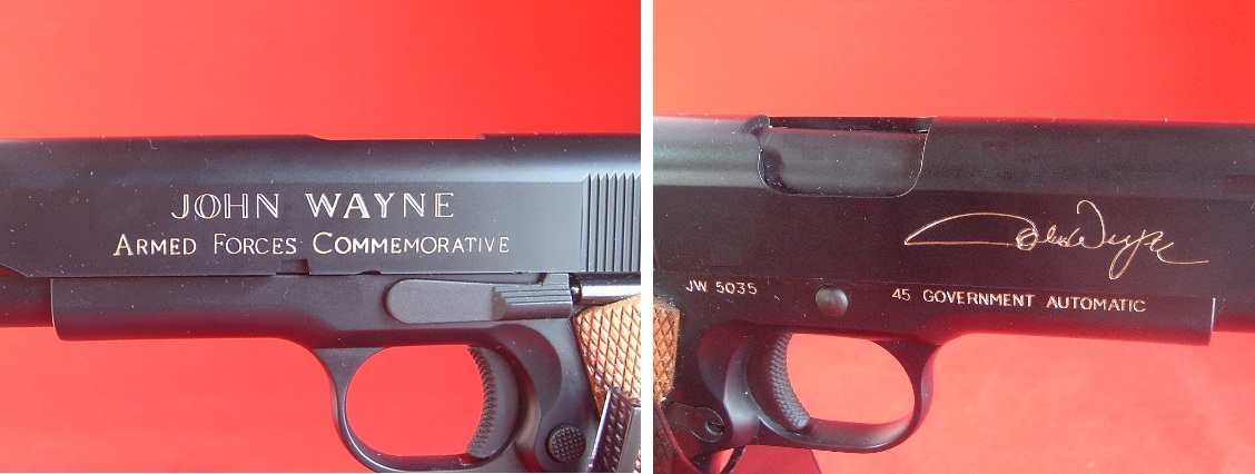 ちなみに「ジョン・ウェイン記念モデル」としてのモデルガンはフランクリンミント「M92ライフル」、同じくフランクリンミント(マルシン社販売版もあり)「ジョン・ウェイン『駅馬車』SAAモデル」が存在する。