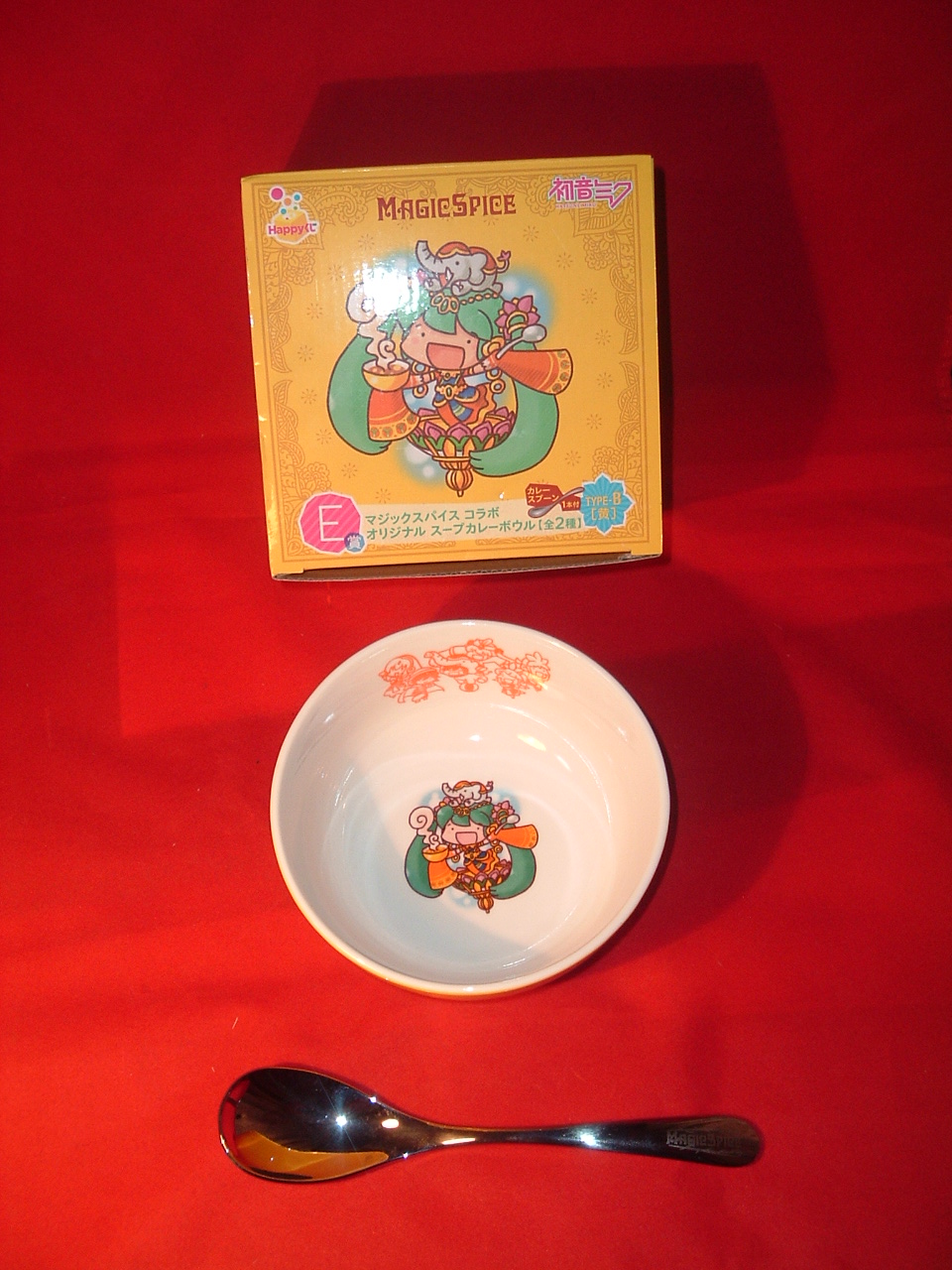 痛みはあるものの日々の暮らしや舞台には支障があまりないようで安心して「御静養」をお薦めしましたが、何分「お仕事」がお仕事だけにその「静養」が難しいだろうなぁ。 お大事になさってください。 中国地方出張中にて広島県入り。 東広島市を経て広島市に至る。 「平和大通り」沿いの定宿ビジネスホテル(金沢でレ○"絡み?の女性殺人事件があった同じチェーンホテル)にチェックイン後、帳の居り始めた『魔都廣嶋』にフラフラと繰り出す。 夕食は「広島風お好み焼」有名店『八昌』。 午後七時過ぎのピークであろうか、店の外にお客が溢れだしている。 一人客なので何とかカウンターに滑り込めた。 まぁ肩身はちょっと物理的に狭かったけど。 「肉ソバ玉withイカ天」と生ビール。 焼き上がるまで「すじポン」といういつものコース。 御機嫌な千鳥足(少しオーバー。ビールは二杯しか呑んでません)で某プロレスラー養成所みたいなコミック専門店へ。 新刊を二冊と探していた「薄い本」を数冊。 「薄い本」ロクに価格も視ずにレジに持っていったら、ババちびるくらい高価かった… また改めて御紹介しますね。 八丁掘のモデルガン屋に寄ったら店休日だったので、ナイトキャップ代わりの酒をコンビニで買って宿に帰るようにする。 なるべくカロリーが低い発泡酒を選んでレジに行くと、その前の「一番くじ」が目に入った。 『初音ミク Happy一番くじ』 本当に「初音ミク」にはほとんど興味が無いが(酒が)一寸入っている勢いで「くじ交換券」を一枚手にして、酒と一緒にレジに持っていく。 「くじ」800円もしやがんの! 捲ってみたら「E賞」と書いてあった。 頭の「A」から数えて5番目なのでどんなに素晴らしい景品が当たったのかとワクワクしていたら、これぢゃった↓ 『E賞 マジックスパイス コラボ オリジナルスープカレーボウル(カレーボウル+カレースプーン/全2種)』 はやいハナシが単なる「カレー皿」。 800円出して小っちゃなショボい「カレー皿」が一個かよ。 トホホ
