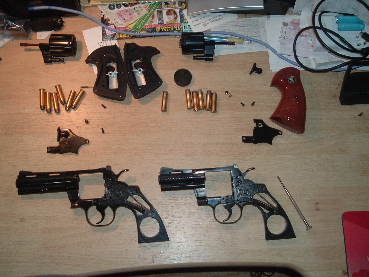 山陰出張中。 9号線を出雲方面から西へ疾る。 島根県江津市から得意先へ訪問。 先週の「豪雨災害」の被害の爪痕が想像以上で、まだ生々しい。 江津在住の友人(漫研初代会長「轟先生」)が豪雨状況中継をツイッターで呟いていたが、やはりイメージとこの目で確認する現場は違う事を再認識。 市役所には国土交通省の「緊急災害対策本部」が設けられていた。 ま、そこは「商売」で来ているので「ナニかお手伝い出来ることがおましたら♪」と当社カタログを撒いて営業活動。 江津を超えると9号線すぐ脇の土砂崩れ現場が目立つ。 道路上も流れてきた土砂で「土色」。 それが浜田市まで続く。 浜田市では得意先へ至る流通団地入り口にも土砂崩れの跡が。 当日はこれが原因で出入り出来なかったそうな。 山陰線「浜田‐益田」間も昨日復旧したばかり。 夕刻に島根県益田市の定宿『かじか荘』にチェックイン。 温泉で旅の汗と埃を洗い流した後、お楽しみの「夕飯」時間。 部屋食で仲居さんが机の上に数々の御馳走を並べてくれる。 「いっただっきまぁーす♪」 先ずは瓶ビールで一人乾杯。 食が進んで半分くらい食べたところで、そろそろ「御飯」を盛ろうかなっと。 あれ? ご飯御の入った御櫃はあれど、御飯用のお茶椀が見当たらないぞ? 持って来るの忘れはったんやな。 わざわざ「おまへんで」と云いに行くのも面倒くさいし、そのまま「御櫃」で直接食べることにした。 なんとなく『豪快さん』である。 『豪腹さん』であるような気もしないではないが。 【8月27日の「ラジオ通信販売」日記】 プロゴルファーの「石川遼」クン。 肝心のゴルフでは全くと言っていいほど活躍できていませんが、「英語力」だけは無駄にグングン上達していることは御存知ですね? その「石川遼」クンが愛用しているというのが、例の「聞き流すだけの英語レッスンCD」! なんと勉強しなくても良いのです。 ただ「聞き流す」だけでメキメキ英語力が上達するというヒット作ですね。 しかし、遂に新作が登場しました。 こんどは「聞き流す」のではなく、なんと「聞き逃す」だけで良いというから驚きです。 講師は「ネイティブアメリカン」の『インディ・アン』氏(年齢不詳)。 あの「カスター将軍」とソルジャーブルー共の大虐殺を生き延びたという、伝説のアメリカ原住民野郎なのです。 もう発声どころか「滑舌」も最悪で一体ナニを喋っているのか全然わからず、思わず「聞き逃し」てしまうのが大きな特徴ですね。 「え? いま何て言ってたの??」って感じ。 しかし驚くなかれ。 いつの間にかこのようなセンテンスの生の英語が、貴方の口からスラスラ出るようになっているのが体験できるのです。 ・「インディアン、ウソつかない」 ・「良い白人、死んだ白人だけ」 ・「あたまの皮 HUG !!」 ・「ついでに男女とも割礼する。これ無料ネ♪」 ・「キモサベ!」 今ならご注文いただいた方 全員に「3分間体験版CD」をたった一枚プレゼント! このチャンスを逃す手は有りませんよね。 お申込み番号は「○○ー○○○○ー○○○○」 「奥さん、コメ屋です」とお憶え下さい。 (チャンチャラチャチャチャ~ン♪ BADsMARUラジオショッピング~~♪) 【8月25日の「雨なので忘れかけていた『硝煙』と『GUN-OIL』の香りに浸る」日記】 ところが一番最近に中古で入手した「GR-2000樹脂製コンバットパイソン」のシリンダーが突然、回転不良となった。 |