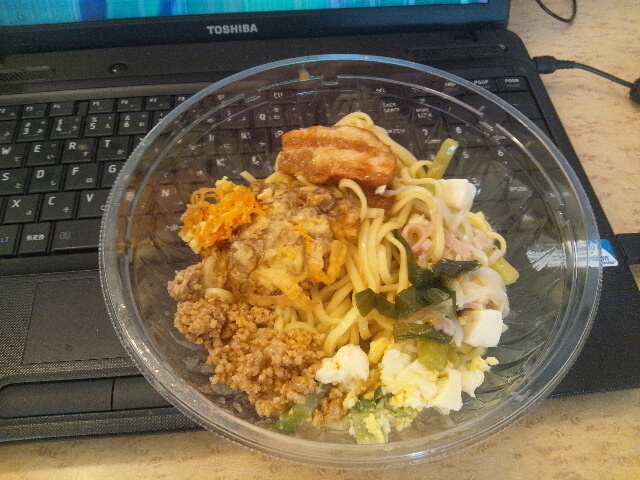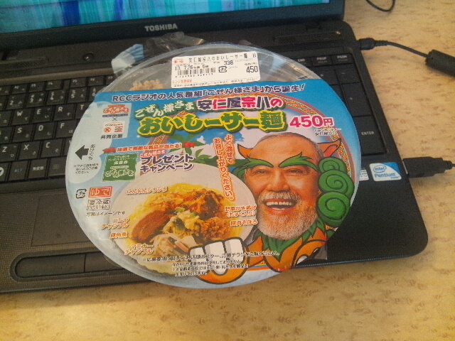 山陰から山陽へ。 広島県「魔都廣嶋」へ至る。 夕飯はコンビニで買ってきた「安仁屋宗八の『おいしーサー麺』」。 これは何かと問われれば、広島のローカルAM放送局RCCラジオの人気番組「ごぜん様さま」で月曜のパーソナリティを務める「安仁屋宗八」氏がコラボしたコンビニ専売食品。 「安仁屋 宗八(あにや そうはち、1944年8月17日 - )」氏は、元プロ野球選手(投手)。 現役時代は「広島東洋カープ」「阪神タイガース」で活躍した。 ここ「広島」では現役の「野球解説者」でもあり、いまだに人気が高い。 麺は氏の出身地である「沖縄」の食材が盛られている。 ゴーヤチャンプル、豚角煮、マミナーチャンプル(なに?)、等々。 ゆで麺に塩味のスープを加え、これらをグチャグチャ掻き混ぜて豪快に食す。 ちょっとザンナい(※)けど美味しい。 でもこれで450円だからお得感あり。 註(※) 「慙無い」 みぐるしいとか、見るに忍びないとか、粗末とか、「無慙」の意から、ひいては、見苦しい意に用いる。 標準語だが関西地方で主に使われている。 近松の脚本『傾城若紫』(元禄)中巻に「これは女のざんない、足で蹴るか、憎い奴の」。 『小栗判官官車街道』(元文)第四段に「蚊のくふにざんない裸身で、何の用で誰を呼びにお出でなされた」など PR