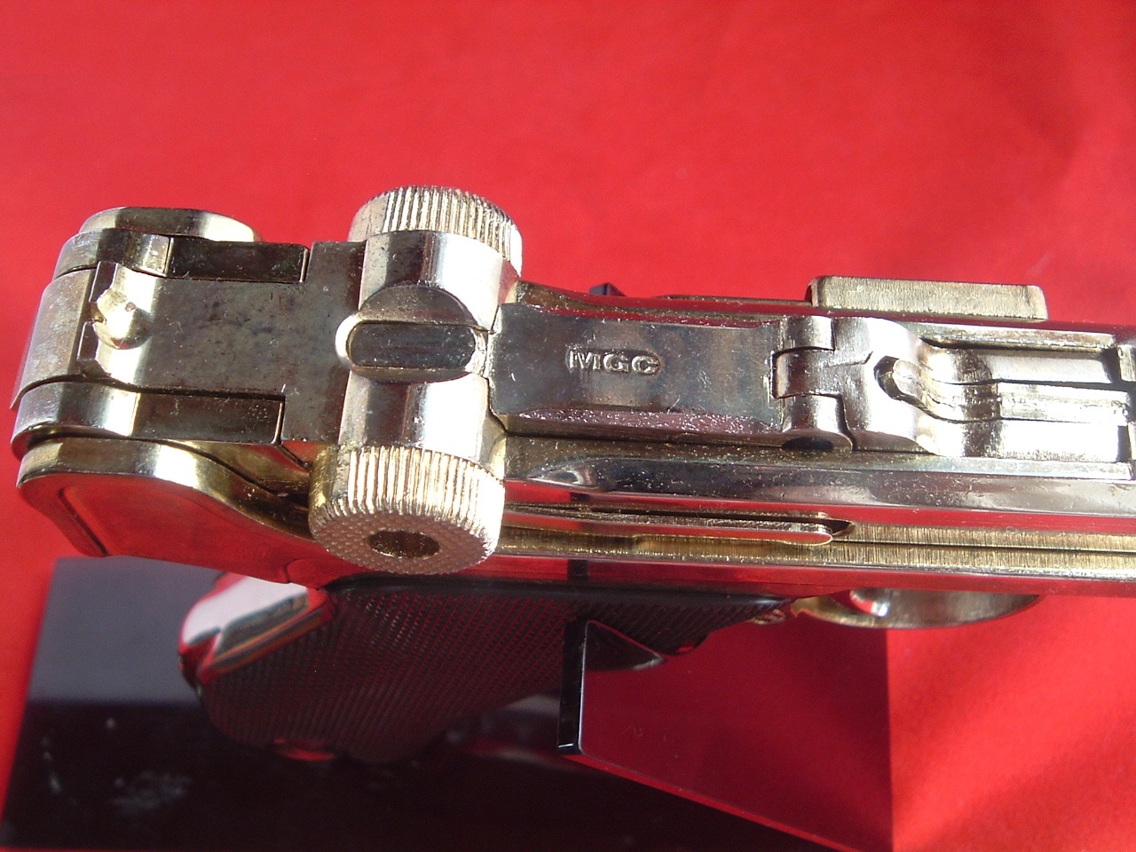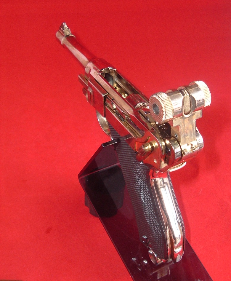 お仕事中の営業車の中でも「スマホ」を活用する時がある。 「ナビ」や「地図」を利用したり、サイマル配信されるラジオを聴いたりワンセグTVを受信したり。 今まで特に「携帯電話ホルダー」を持っていなかったので、その時はスマホの置き場所を色々と工夫していた。 でも発信や制動時にスマホが落っこちちゃったりするんだよね。 そんな際、とある中古店でこんなモノを発見した。 『Car UNIVERSAL HOLDER』 新古品で525円。 見るからに「メイド・イン・チャイナ」のバ●タもんやけど、値段が値段だから試しに買ってみた。 コイツを運転席の横の「ドリンク缶ホルダー」に装着を試みる。 底が「吸盤」になっており、ペタッと貼り付いて固定できるはずだ。 …ありゃ? 缶ホルダーの平面部が「梨地仕上げ」になっていて、全然「吸盤」が引っ付かないよ。 それぢゃぁ本体がグラグラ不安定で使えねぇなぁ。 シオシオのパー>… まぁ、その問題はこっちゃ置いておいて、この「ホルダー」の中心部の「美女」が気になる気になる。 誰だ? この「貧乏臭いゴージャスな美女」は? 【6月23日の「P08とP38は私にとって常に『凶銃』という枕詞が付くのだ」日記】 MGC社はモデルガンの名称の番号に「-(ハイフン)」を付けていた。 コイツと恒例「記念撮影」するならば、現行で入手可能であり出来も素晴らしい「マルシン社金属製モデルガン『LUGER P08 ネイビー』を並べるのが「定石」というもの。 【6月22日の「焦った焦った」日記】