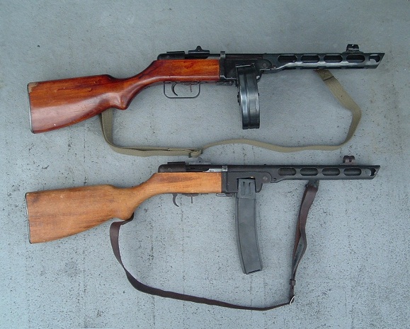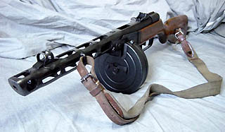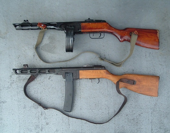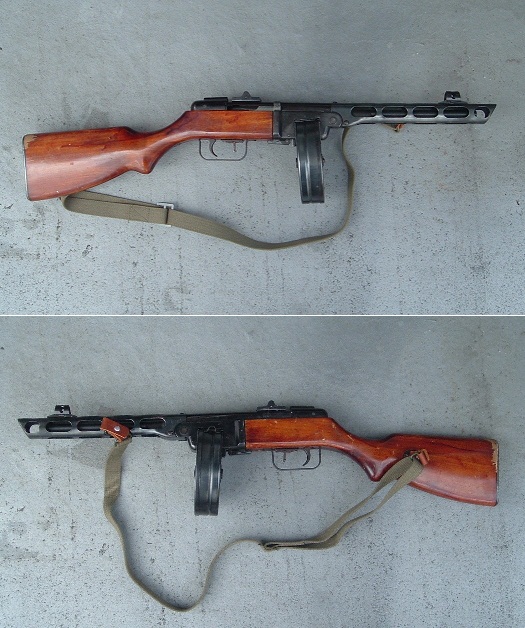 まだ「右膝」が完治していないのでカンチSEXしよ♪ってワケやなしに(←このネタばっかし)、片膝などついて接写撮影などが出来ない為、しばらく「拳銃」類の画像UPは難しそうです。 したがって今回の 《SUNDAY GUN-SMITH》 またまた「長物」の御紹介♪ 今回の獲物は、大好きな ハドソン社製モデルガン 『PPsh-41』 『シュパーギンPPSh-41(和名:シュパギン式短機関銃1941年型、ロシア語:ППШ-41ペーペーシャー・ソーラク・アヂーン)』は、第二次世界大戦時にソビエト連邦で開発された短機関銃。 っつうのは前回2009年8月16日付拙日記でもご紹介したとおり。 この度、目出度く二挺目を中古にて入手いたしました。 「マガジン」と「リアサイト・カバー」欠品ながら、たぶん未発火。 金属部分の状態もまずまず。 「木ストック」に少しだけダメージが有るのは残念。 でもこの「ストック」は後でニスを塗って再仕上でもしているのかな。 ピカピカだよ? 初代「ペペシャ」と記念撮影。 初代は「トリガーガード」破損中。 これから「中華製伝電動ガン」のジャンクでも入手して移植しなくっちゃ。 これには「ボックス(箱型)マガジン」を装着した。 これも珍しい「ハドソン純正」。 以前は中華製電動ガンの「Ppsh用ボックスマガジン」の外側だけを流用していた。 でもやっぱPpshには「ドラムマガジン」だよな。