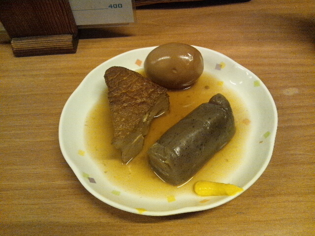 午前中は愛媛県松山市で残りのお仕事を片付けて「久万高原」越えで高知県方面へ。 心配していた「高地」での積雪は無し。 借りた車のタイヤがノーマルだっただけに「ホッ」とする。 四国だろうが高知だろうが、冬場は「雪」が積もる時ゃ積もるからね。 南国市を経て 夕方に高知市入り。 定宿ホテルにチェックインした後、「さて、今宵は何処に飯を喰いに行こうかな♪」とドス黒く画策していたところ、次々と「見積」や「打ち合わせ」の電話が立て続きに掛かってくる掛かってくる。 お蔭様で繁華街に繰り出したのはトップリと夜の帳が下りてから。 お月様が綺麗。 まだ飽きずに喰ってます。 「おでん」 少し離れた席に座ったオッチャンとオバチャンが世間話をしていていて聴くともなく聴いていたのだけど、それがメッチャ面白い。 主にオバチャンが「高地弁」で機関銃のように「昔話」を繰り出すのだけど、それが「橋本〇二郎」とか現地の実在人物のゴシップが多い多い。 すっかり「耳ダンボ」状態。 そのうちカウンターのおネェサンと喋っていると、件のオッチャンは店の「御主人」と判明。 店そっちのけでオバチャン客の相手をしていたのね。 喰って呑んで三千円でお釣り有り。 そしてここ「土佐高知」の「呑み屋」では、今まで「ハズレ」なし♪