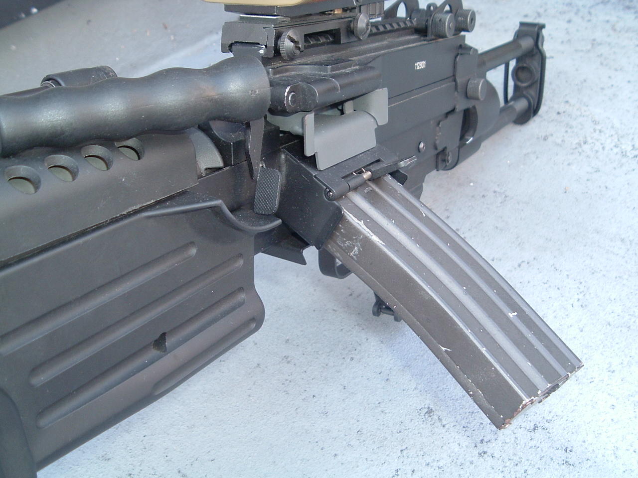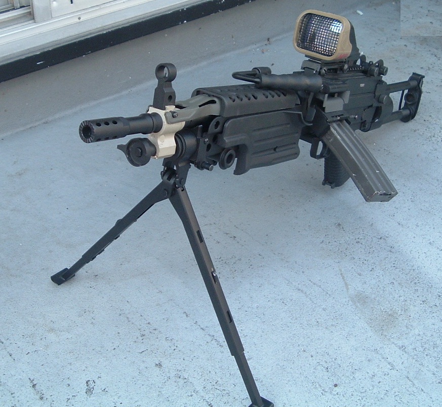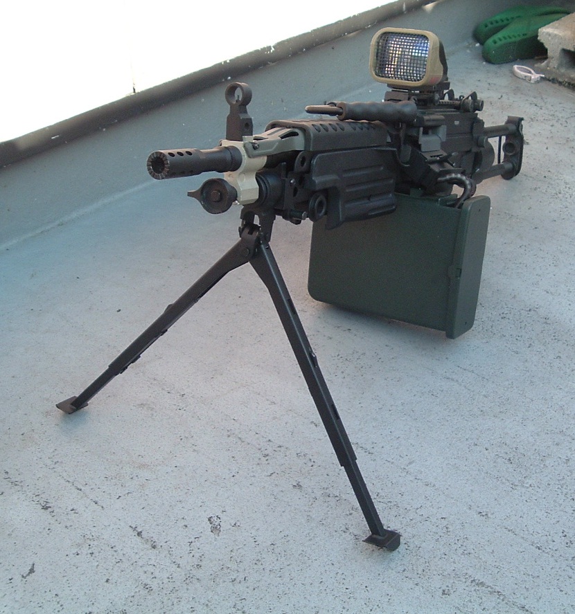 『ミニミ軽機関銃(MINIMI)』とは、ベルギーの国営銃器メーカー「ファブリックナショナル(FNL)』が開発した、5.56mm NATO弾を使用する分隊支援火器である。M249の名称で、1984年にアメリカ陸軍に採用され、わが国では「住友重機械工業」がライセンス生産を行い「5.56mm機関銃MINIMI」の名称で自衛隊が採用している。陸上自衛隊では62式7.62mm機関銃の後継として1993年度予算から調達を開始し、2011年度予算までに4456丁を調達している。調達価格は約200万円である。