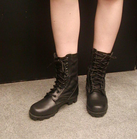 入場してからすぐ「売店」を素見かす。 何軒か出展していたが大きく分けて「食べ物」「飲み物」「自衛隊グッズ」の三つ。 値段は例えば「ペットボトル入りジュース」で150円だったので、格段「高価」ではない。 食べ物は「弁当」「焼きそば「たこ焼」などオーソドックスなものから「ジャンバラヤ」など凝った一品まで。 GUN関係も「中華安物エアガン」が数種売られていたが、銃関係が「場内持ち込み厳禁」とやららしい。 「持ち込まれますと強制退場となります」との貼り紙。予約として演習終了後の引き渡しとなるようだ。 さて極暑のなか汗をかきつつ目を皿のようにして探すが、一軒も取り扱う店が無い。 「ビール」である。 もう「生」でも「缶」でも、よしんば「発泡酒」でもイイからさぁ…と半ベソになりつつ探すが全然見つからない。 ブゥブゥ文句を垂れていると同行の「をやぢ殿」から「演習公式パンフレット」の注意文の一節を指し示された。 『場内の飲酒は禁止です』 チェッ! 「ケチ」だなぁ。 「戦車」を肴に一杯やろうと心から愉しみにしていたのにぃ。 次回は密かに持ち込んぢゃおぅかなぁ(次回の機会があれば…だけど) あとやっぱ、「好き者」が多いので仕方ないことだが『ミリタリーファッション』の若い観客が多い。 迷彩柄の「コンバットパンツ」に編み上げ「ジャングルブーツ」という格好も目立つ。 シート座席の一番端っこに座っていたので、次々客席中央の客が出入りをする際に目の前を土足で闊歩される。 この暑い中、男の「ジャングルブーツ」は暑苦しくて鬱陶しくてかなわん! やめろ! なんとか法律で規制できぬモノか? その代り、女性の「ジャングルブーツ」は許す! ましてや若い可愛い娘ちゃんの「ミニスカート」や「ホットパンツ」姿での「ジャングルブーツ」着用姿は大好きで、思わず「眼福眼福鶴亀鶴亀…」と手を合わせて拝みたくなっちゃうほどである。 これはこれで、なんとか法律で保護や奨励できぬモノか?