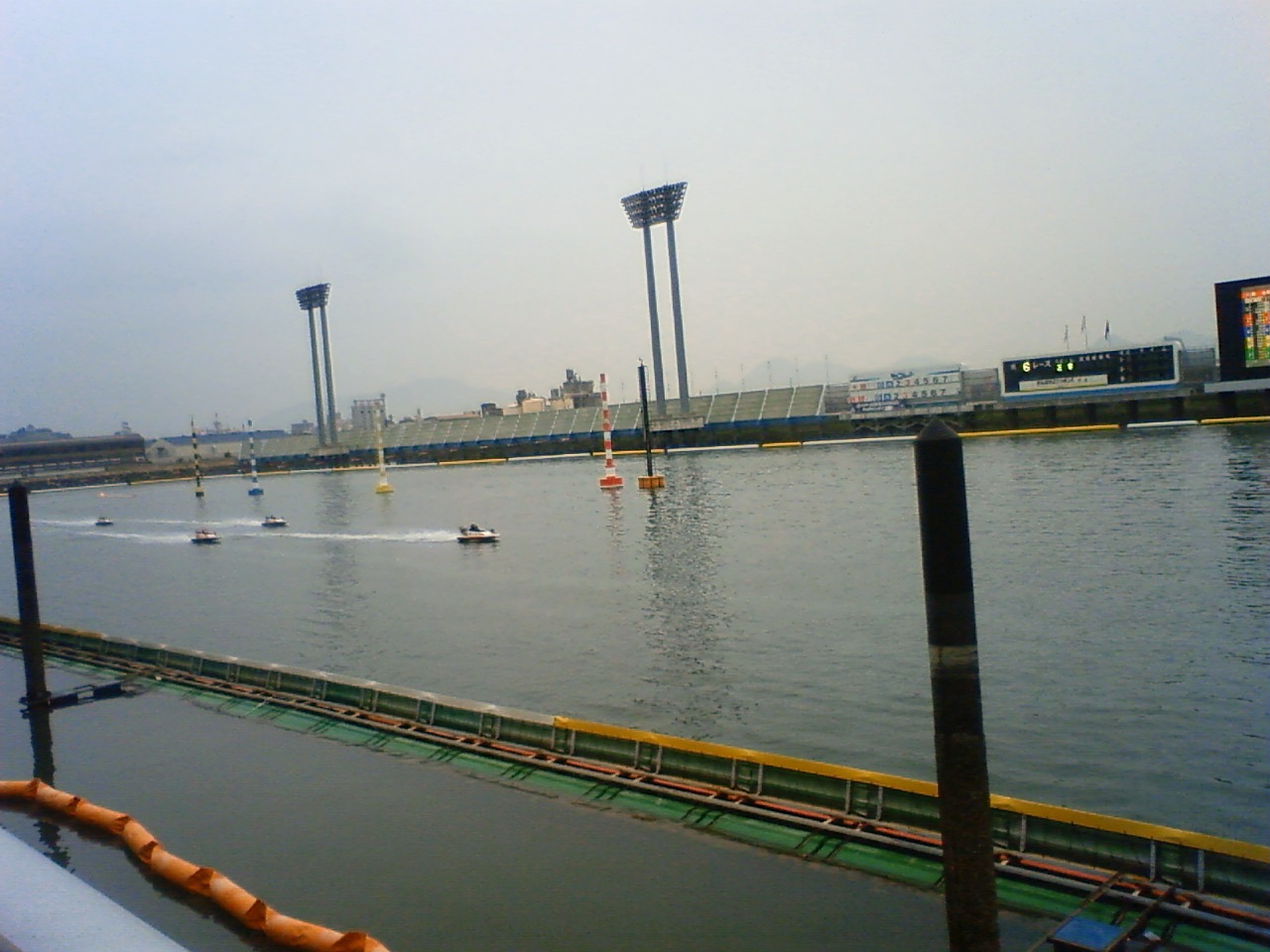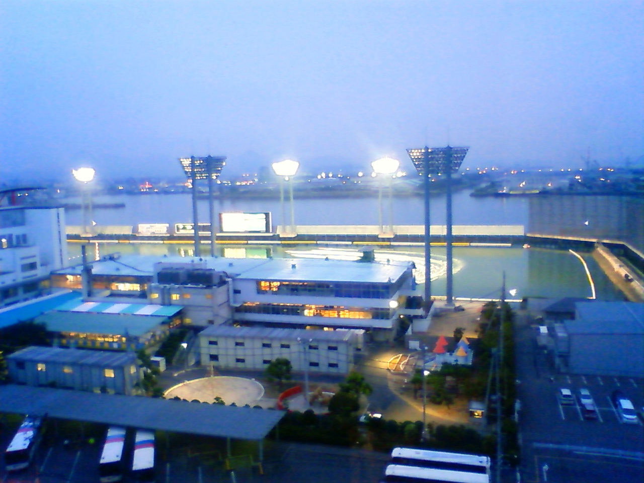 【6月04日の「陽が暮れてからのナイター照明が照らし出す、ボートによる水の波紋が綺麗でした」日記】