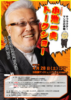 自宅で朝までグッスリ寝てから、電車の近鉄線で京都入り。 「竹田」で「京都地下鉄」に乗り換えて「烏丸御池」に到着。 目指しましたその先は『京都国際マンガミュージアム』で御座いました。 今日はKinky大学漫画研究会第一期生の大先輩『やばっさん(仮名:年齢不詳)』の御紹介で、有名劇画原作者『小池一夫』先生の『出張劇画村塾京都』講座が開催される日なのであります。 『やばっさン』は現在「劇画村塾」塾生にて、某漫画雑誌にて絵師「平野仁(『青春の尻尾』『少年の町ZF』『サハラ』等)』先生に原作を提供連載中。 「やばっさン」が在住している地元の「京都」での開催の為 講座への動員の責が発生し、我々にお声が掛かったという次第。 会場には既に「パキラ」氏等漫研後輩OBらが到着していた。 『小池 一夫(こいけ かずお)』、本名及び僧号:俵谷 星舟(たわらや せいしゅう)、旧名:譲(たわらや ゆずる)、1936年5月8日 - )は、日本の漫画原作者、小説家、脚本家、作詞家、作家。秋田県大仙市出身。男性。神奈川工科大学情報学部情報メディア学科客員教授、大阪芸術大学キャラクター造形学科客員教授。出版社の小池書院編集長。中央大学法学部卒。別筆名に小池一雄、緒塚敬吾、イゴル・キニスキー等がある。身長183cm。血液型はO型。 漫画原作作品に『子連れ狼』(画:小島剛夕)、『御用牙』(画:神田たけ志)、『高校生無頼控』(画:芳谷圭児)、『修羅雪姫』(画:上村一夫)、『クライング フリーマン』(画:池上遼一)、『オークション・ハウス』(画:叶精作)、小説に『乾いて候』、『夢源氏剣祭文』がある。初期の『ゴルゴ13』(さいとう・たかを)にも関わっている。 信条は「漫画はキャラ起てが大事だ」。インパクトのあるキャラクターを動かし、世界的な謀略劇の中を鍛え上げた肉体を駆使して駆け抜けるというハッタリの効いた壮大な筋が身上。「キャラクター原論」の提唱者である。(以上Wikipedia参照) 我々の(漫画好き)世代には決して欠かせぬ存在の偉大なる「原作者」である。 暫らくして『やばっさン』到着。 御挨拶を交わしながら『マンガミュージアム』の開館の午前十時を迎える。 入館料金を支払い講座の「入場整理券」を無事GET。 ミュージアムのロビーで立ち話をしている内に、一つ年下の後輩『段目段平』こと「N西くン」も到着した。 馬鹿話をしながらミュージアムを一周。 まだ講座の開始時間である午後二時まで時間が有るので、京都市役所前で開催されている「フリーマーケット」を素見す。 その後「やばっさん」が「小池師匠」出迎えの為に中座され、N西くンと一緒にお昼ご飯を。 「MARUさン。お昼にナニ食べたい?」 「そやなぁ…いま『ダイエット』してるから…『串カツ』喰いたい!」 「なンですのン、それ?」 結局「串カツ」ならぬ「串焼屋」に飛び込んで『焼鳥定食』1100円也。 『定食』がお膳に並ぶ前に「瓶ビール」が卓に運ばれる。 さてユックリお食事(と瓶ビール四本)を摂って、ご機嫌で会場に戻る二人組。 ちょうど時間となりまして、ホール会場の「劇画村塾関係者優待席」まで入場を果たしました。 やがて『小池一夫』師匠御大入場。 まずは六十分の師匠単独講座。 いや、それが面白いのなンのって。 「文章も書けるわ、ベシャリも上手いわ」って、まさに「天が二物を与えし生きる伝説」が目の前に存在していたンだ。 マニアなら喉から手が出るような「コレクション」の数々に目を瞠る。 いや、面白かった。 充実した時間が過ごせました。 講座終了後、近くの別会場で小池先生を囲んでの塾関係者など身内だけの「茶話会」。 この会場で小池先生と大西祥平さンに持参した『小池一夫伝説』にサインをして頂きました。 四条河原町ビアレストラン老舗『ミュンヘン』にて、莫迦話しながらビール呑む呑む♪ 調子に乗って「バーボン」もお代わりお代わり♪ で、結局「終電」で千鳥足ながら無事帰宅いたしました。 いやぁ、楽しかったのなンのって。 充実した幸せな時間を過ごせて、まことに感謝の一日だったンであります。