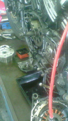 入院中の愛車V-MAXを見舞に行く。 症状は昨年末に起きた「エンジン不点火」。 中学の同級生が経営する馴染の単車屋。 ハンガー上には左下半身を解体された無残な姿を晒す愛車が。 おぉぅ? 不憫なり。 不調の原因は「スターターアウタークラッチ」の破損。 「ヘキサゴンソケットボルト」が一本折れていた。 FUCK! タイの洪水問題やなんやかやで、YAMAHAからの部品供給が遅れているとも聞く。 あわせて「修理依頼者(私)」の無茶な要求も完成を遅らせている要因。 ドス黒い野望とともに持ち込まれたパーツの数々がこれだ。 ↓ お店からの「請求書」が怖いMARUなのでした。 (今日の〇ンコ風)