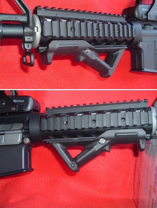 今回ちょっと変わったパーツとして「R,I,Sハンドガード」下部に「MAGPUL社実銃用『Angled Fore-Grip』」を探してきました。