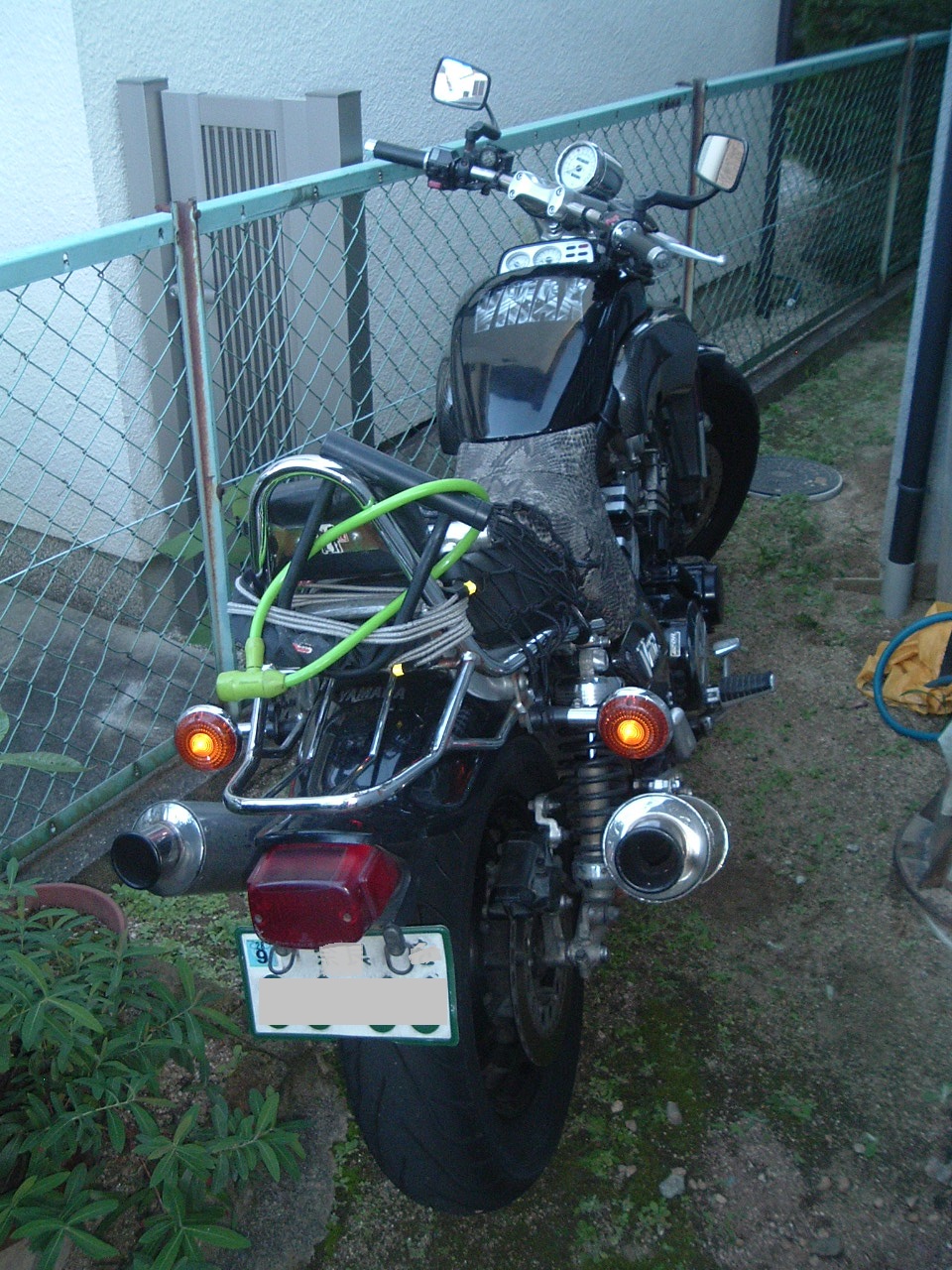 さて、お待ちかね… っちゅうか、私が最も待ち侘びた日がやってきた。 愛車V-MAX、「退院」の日である。 勢い余って朝の十時過ぎに通いの単車屋に行っちゃう。 中学同級生の店の若旦那はまだ来ていない。 へっへっへ♪とほくそ笑みながら、パドックから愛車を引きづり出す。 後ろのタイヤも新品となっているのを確認してから、留守番のオバチャンに「試運転行ってくるわ。お昼から支払に来ます」と言い残す。 二ヶ月半ぶりのエンジン始動。 限定解除を取って初めてV‐MAXのメインキーを回した時の胸の鼓動が蘇える。 一発点火! 死ぬにはいい日だ。 暖機時間もそこそこに疾りだす。 加速も問題なし。 リアタイヤが新しい所為か、カーブの時に想定以上に車体が倒れ込む。 とある交差点でUターンをかます必要を生ず。 いつもの癖でラフにスロットルを開けたら、思いっきりタイヤが空回り。 MAXターンのようにケツを大振りして、ババちびるくらいに肝を冷やした。 真新しいタイヤは一皮むけるまでは表面に油が浮かんでいるケースがあるので、取扱いには注意が必要だ。 その新しいリアタイヤは「MICHELIN(ミシェラン) COMMANDER Ⅱ 【150/90B15 M/C 74H TL/TT】」。 初めて履く型。 タイヤのチョイスは店の若旦那に任せていた。 悪くない。 そのうち近々にフロントタイヤの寿命も尽きる。 前のタイヤもこれと同種にしようかしらん? 取り敢えず近所に爆音と排気ガスを振りまいて店に戻ると、単車屋の若旦那に 「まだ車検シールも貼ってないのに、ナニ勝手に単車を持ち出して走りくさってくれとんねん!」と怒られました。 ちなみに修理代金と車検代は「WAガスBLKガン『M4A1フルメタルカスタム』」新品一挺と専用マガジン二個を定価で買ったのと同じくらい♪
