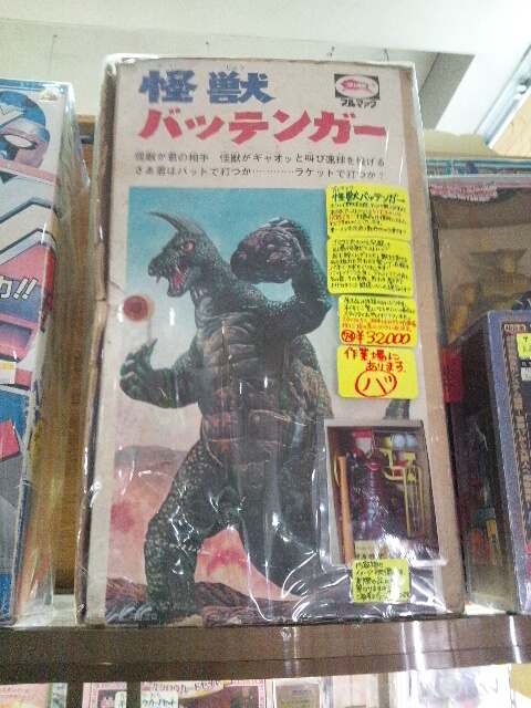 「芦原温泉」で目覚める。 昨夜は「観劇記念ひとり打ち上げ」で、午前二時まで某居酒屋で痛飲。 八時過ぎに目覚めてみれば、それはそれは見事な「宿酔いモーニング」。 フラフラしながら「セントピアあわら」の日曜早朝営業で朝風呂に飛び込んでアルコール摘出を目論む。 わっはっは またアルコールが身体中を駈け巡って良いコンコロ持ちになっちゃったよぅ~♪ サウナで無理矢理、酒と汗を排出。 でも頭痛は治らないんだよねぇ。 十時前に芦原の宿を出発。 愛車の進攻先を東へ取って石川県入り。 「万代書店加賀店」で狩猟ハンティング。 獲物はコレといって無し。 でもショーケース内の『ウルトラマン原画』に涎を禁じ得ない。 「ウルトラマン」って書いてあるけど、見事に「セブン」やんw 右下に「HARA」とのサインが見える。 欲しいなぁ、これ。 4マソ円だってサ。 あと目を惹いたのは『怪獣バッテンガー』。 我々世代なら誰もが知ってる『ウルトラマシン』の怪獣版。 ちなみに『ウルトラマシン』とは、1968年に任天堂が発売した玩具。 世界初の「家庭用バッティングマシン」である。 ピッチングマシーンのように「怪獣バッテンガー(アーストロン!!)」が付属の柔らかいボールを投げるのだ。 これも欲しい欲しい。 でも3.2マソ円は出せねぇぞ!? 8号線を西へ戻る。 アチコチの「狩猟場」に寄り道をしつつ、南下して峠越えして関西へ。 道中「越前」辺りで通り雨に遭遇して激おこプンプン丸である。 昨日程は寒くなくて助かった。 さすがに今回は「鬼門福井」といえ何事もなく帰宅できそうだわぃと実感しつつ奈良県入り。 スピードが出過ぎないようにとふと愛車の「スピードメーター」見ると 「時速0km/h」 いや疾ってる疾ってるってば! 「法定速度」遵守までとは言わないが、ちゃんと「ぬわわkm/h」近くで公道をブッ飛ばしてるんだってばよ(何故ナルト?) あ? 「スピードメーター」壊れた?? 畏るべし 「鬼門福井」の実力を見せつけられた一瞬であった…