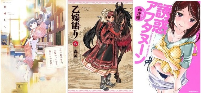 本屋に行きました。 ☆新刊ハンター ・『あの商店街の、本屋の、小さな奥さんのお話。』 高橋しん 良い話です。 半分くらい読んだけど、もう滂沱の涙。 「本」「本屋」は好きだから。 ちなみにこの本、「少女漫画」ですので「花とゆめ」の『白泉社』から出版されています。 買うのが少し恥ずかしかったけど、書店のヒトに捜してもらいました。 お薦めします。 ・『乙嫁語り⑥』 森 薫 「戦乱編」 アミルの兄ちゃんと婆さんが陰の主役でした。 表紙のアミルさんが少女漫画っぽくて可愛くて素敵♪。 ・『誘惑アフタヌーン』 みき姫 未読 この作者さんの出版スピードが速くて心地よい。 ・『月刊映画秘宝3月号』 特集「特選!2013年度ベスト&トホホ10!!」 ・BRUTUS特別編集『[合本]大友克洋 2012年再起動、そして』 特別短篇漫画『公園』別冊付録付 ちなみに自慢ではありませんが「大友克洋」デビュー作『銃声』掲載『漫画アクション増刊8月4日号』 持ってます。 自慢自慢♪♪