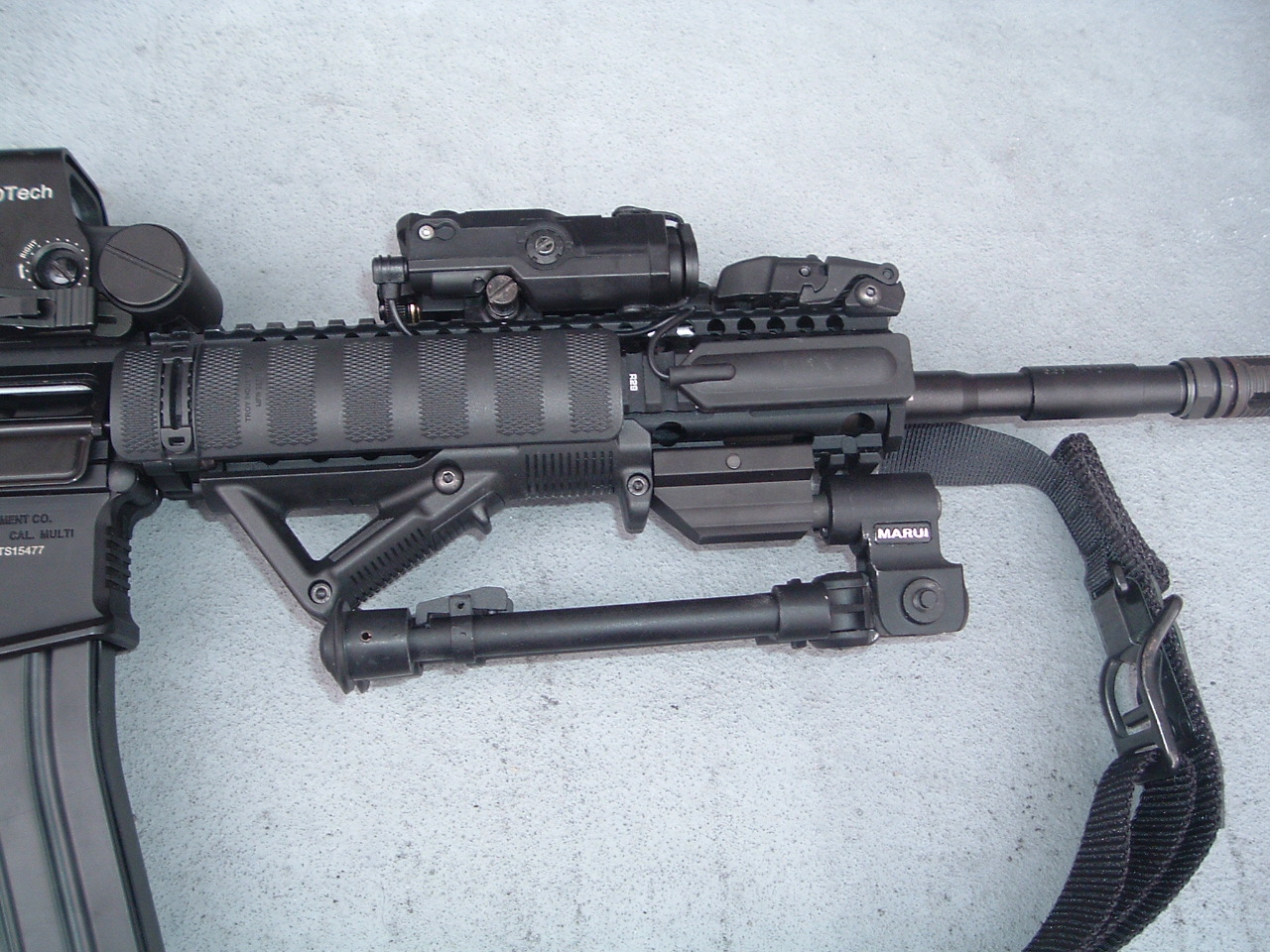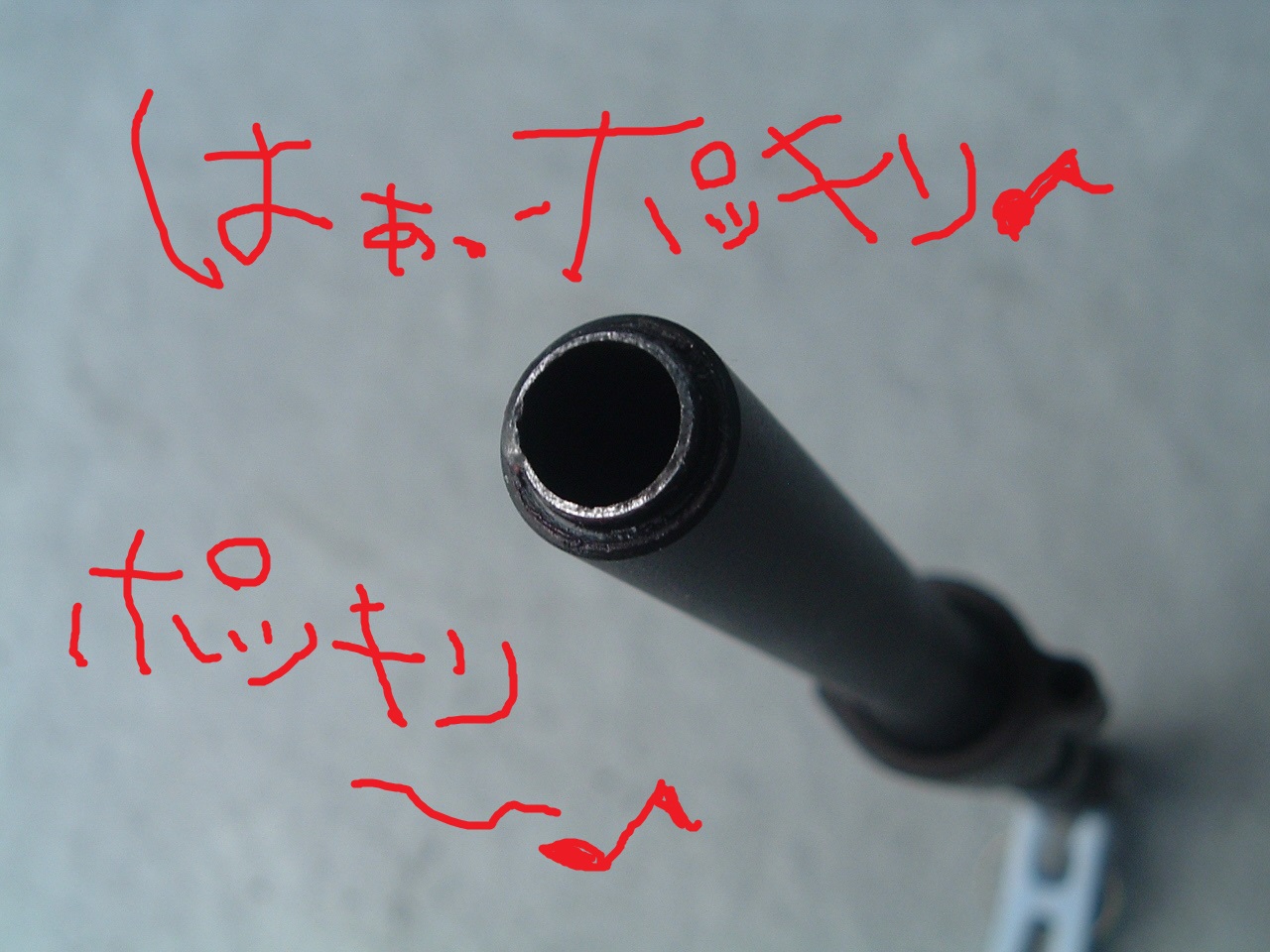 《 SUNDAY GUN-SMITH 》 TOP電動排莢『M4 CARBINE』に「マルイ タクティカルバイポッド」を付けてみました。 っちゅうてもバイポッド(銃用二脚支持器具)本体を中古屋で980円で見つけて小躍りしながら購入したところ、銃に固定するに必要な「マウント部」が全て欠損していた。 説明書に「この製品はユニットで海外より輸入しているため、部品パーツ類の御注文は出来ません」と書いてあったにも関わらず、一応「マルイ」へ電話して確認したのだが、やはり無理。 仕方なく海外(中華)G&P社製「9mmレール対応バイポッドマウント」を別に購入する羽目に。 まさに「安モン買いの銭失い」でんな。 それでもバイポッド含め3K円以内で買えたんだけど。 この「バイポッドマウント」を装着する為に「マガウェル兼ホールディンググリップ」を外し「AFG(アングルド・フォアグリップ)」を少し後ろに移動させた。 このバイポッドは折り畳む際、前後に倒すことが出来るが、後部側に畳む場合は「AFG」を使用することが出来なくなる。 はい。 今日はココまで♪ え? 《SUNDAY GUN-SMITH》はいつもだが、今回は特にぜんぜん面白くないって? あ。そうですか。 (ウルセェヨバァカ) それでは、ここから今日の「オチ」 先日の『第3回米子映画事変』にこのTOP「M4 CARBINE」を愛車V-Maxの後部に倅と一緒に搭載し参戦したことは、以前に述べた通り。 結局 結論としては「映画事変」会場の「出張シューティングBAR『野戦EA』」に於いて「排莢不良」の連続で単に「赤っ恥」を晒して、また単車にここ「M4」を入れたガンバックを括り付けて無事に帰って来たワケなのだが、家に帰り各武装類を点検して腰が抜ける程ビックリした。 我が愛しき虎の仔「TOP M4」の「アウターバレル」 折れてました。 根本近くでポッキリと。 いやぁ、初期型の「TOP M4」の「アウターバレル」が構造上、根元で折れ易い折れ易いとは常々専門誌で読んだり聞いたりはしていたけど、これほど見事に己の愛銃がポッキシ逝くとは思わなんだわ。 そりゃ柔らかい「GUNソフトケースバッグ」に入れて数時間、ぬうわ㎞/hで高速疾れば風圧で折れちゃうわな。 走行中「やけに後ろのガンバッグが風に靡くなぁ…」って思ってたもの。(思ってたなら何とかせぇ!っちゅうハナシやけどさぁ) 現在はメーカーにて「改良型アウターバレル」が購入できるのだが、5,500円もする。 サードパーティの「ECHIGOYA」から「TOP M4アルミアウターバレル」が発売されているけど、これがまた12,000円もするんだもんなぁ。 こんどの給料日になってから考えましょうか… (sigh) 【10月26日の「私には本物のアル中で治療を受けた経験のある友人が実在する>リア中?」日記】 ☆新刊ハンター ・『失踪日記2アル中病棟』 吾妻ひでお 私の周囲のみならず世間では大好評出迎えられている作品。 映画師匠「北京波」先生も取り寄せ予約をされておられたので驚いた。 サラリと描かれてはいるが「怖い本」です。 特に入院中に描かれたという「ミャアちゃん」のカット(P116)。 無茶苦茶怖い。 あれほど可愛い線が描けていた「吾妻ひでお」が…と絶句。 カバーの裏側には作品内にも登場した「セルフケア自己評価表(入院前)」が印刷されています。 ・『終物語㊤』 西尾維新 今回はモロ「推理小説」仕立て。 ガハラさんのお久しぶり 「ぶっ殺す」の台詞に大受け♪ ・『イブニング№22』 「実在ニョーボ」にさよならを ・『ヤングエース11月号』 え、え~っと… 「付録」目当てでんがな あ、「キルラキル」も新連載か ・『映画秘宝12月号』 特集:「スティーブン・キング恐怖映画のすべて!」 ・『月刊モデルグラフィックス12月号』 「戦車」の次は「軍艦」か… 年寄りにはよく判らんなぁ。 戦艦って「ヤマト」以外 この世にあったっけ?