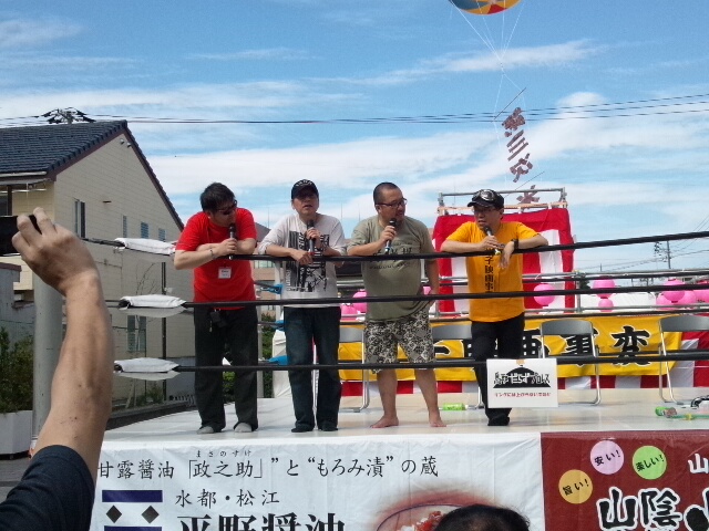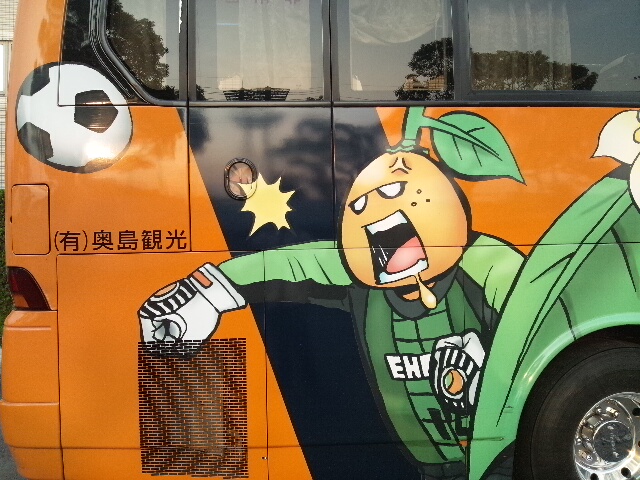 香川県丸亀市で目覚める。 ホテルの前に大型バスが駐車中。 ボディ全体に『愛媛FC』というプリントが認められる。 『愛媛FC』とは地元の松山市を中心とする愛媛県全県をホームタウンとする「日本プロサッカーリーグ(Jリーグ)」に加盟するプロサッカークラブだな。 またチームの「キャラクター」も大きく描かれているのも目立っている。 で、その「マスコットキャラクター」を観て驚いた。 キャラクターは3人おり、「オ~レ君」、「たま媛ちゃん」、「伊予柑太」と名付けられており、愛媛県出身でサッカー漫画『ORANGE』の作者『能田達規』がデザインした。 地元の名産「南予オレンジ」のマスコットである「ぼん太くん」同様、愛媛の特産物である柑橘類(オレンジ、ミカン、伊予柑)を「擬人化」したもの。 良く見てみると、その「キャラクター」3人が全員、「よだれ」を垂らしているのである。 しかも「オレンジ(色)のよだれ」! 思わず笑っちゃったよ。 例の『よだれ少女恋愛漫画』↓ぢゃないんだからって♪ 【10月10日の「え?今日は『体育の日』でお休みぢゃないの?」日記】 土佐高知で目覚める。 台風がかすめて行ったあとのここ数日、暑い暑い。 どないなっとんねや? っちゅうことで 出張最後の夜は映画を観るっちゃ♪ 宿に荷物だけを放り込み会社に本日の業務終了の連絡を入れるや否や、地元のシネコンへGO! 吉例「木曜レイトショー」。 今宵のお題は 『エリジウム』 本当は「狼男凛」を観たかったんだけど時間が合わなかったの。 で、この映画の公開最終日。 観客も十人以下の惨状。 『第9地区』が第82回アカデミー賞作品賞などにノミネートされた「ニール・ブロムカンプ」監督が、マット・デイモンを主演に迎えたSFアクション。 いや、「SFファンタジー」って言った方が良いかも。 巨大な物体が遠方で霞んで浮かんで見えるという、最初は『第9地区』で観て吃驚した映像も見慣れてくると飽きちゃうよね。 ただ『ジョディ・フォスター』の「脹脛(フクラハギ)」が物凄く筋肉質で逞しくって、そこばっかりに意識が行っちゃって困りました。 だから彼女の鍛え上げられたムキムキマッチョな「脹脛」しか憶えていません。 「脹脛フェチ」な方は必見! バットもへし折る「フ・ク・ラ・ハ・ギ♪」(CKBの歌にそういう歌詞があるのよ) ストーリーや仕組みに左程目新しいモノは無かったです。 「自動再生治療ポッド」が面白かったかな? この機械に掛かると「嵌頓」の男性はどーなっちゃうんでしょ?と思いました。 【10月09日の「米子映画事変Bパート最終日」最終回日記】 「米子駐屯基地祭」を満喫したチームは次の目的地「開放倉庫米子店」へ。 午前中とはいえ日曜日にしては駐車場に車が少ない。 みんな「基地祭」に行ってるんぢゃないの?などと話していたら、開放倉庫スタッフが駆け寄ってきた。 「すいません。店内『停電中』のため、閉店しております。現在復旧中ではありますが、いつ復旧出来るかまるで不明です」 ナンヂャソリャ。 最近「別棟」に移転した「カード売場」だけは営業してるんだって。 倅はカード目当てなので喜び勇んで「カード館」に入っていく。 暇な我々は隣のスーパーでアイスを買って舐めていた。「みかんアイス」美味しゅう御座いました。 再び「米子映画事変」会場へ。 中央の広場では丁度、「米子親爺事変:昼の部」開催中。 「赤井孝美」さんの司会により「杉作J太郎」「竹内義和」「西浦和也」各氏が云いたい放題やりたい放題。 ちなみに昨夜の「夜の部」では「杉作J太郎」さんのプレゼンの際、私の当ブログ「極楽秘宝団通信(昨年の「映画事変ジャカルタ風おでんの巻」)」がスクリーンに登場したらしい(☆情報による)。 テーマは「悩み相談」だけど、流石に「昼の部」だけに「エロ系」はNG。「夜の部」では大爆発していたらしいので、何処かに映像として公開して欲しいものだ。 ヲヤヂ一家の長男の進学の相談が取り上げられ、記念品として「オモチャの日本刀」に出演者一同のサインをしたもの(「銘刀親爺丸」)が贈られる。 イイナァ。 広場前の「デスカレー道場」という処で「デスカレー」為るものを食す。 これは食品製造メーカーと、アニメ制作会社ガイナックスが共同開発した激辛レトルトカレーとのこと。 実は「辛さ」に弱い私と倅は「お試しサイズ」を100円で一皿ずつ。 いや。これが辛い辛い。 全身から汗が吹き出し、瞳孔は開き、肛門は弛緩する。 「辛い辛い」と大騒ぎ。 帰路があるのでビールが飲めず、コーラを飲んでそれを凌いだ。 ここでタケダ先輩とヲヤジ一家と今晩も米子で宿泊する☆に、名残は惜しいが別れを告げる。 倅と愛車V-Maxに跨り市内のカード屋を一軒寄った後、午後二時ごろ「米子道」に乗った。 あとはひたすら疾る疾る。 「抜かれたら抜き返す! しっぺ返しだっ!」を合言葉に片道走行距離300kmを、「Vブースト」フル稼動の平均時速「ぬあわkm/h」で。 奈良の自宅に無事到着したのが午後五時。 「米子~奈良