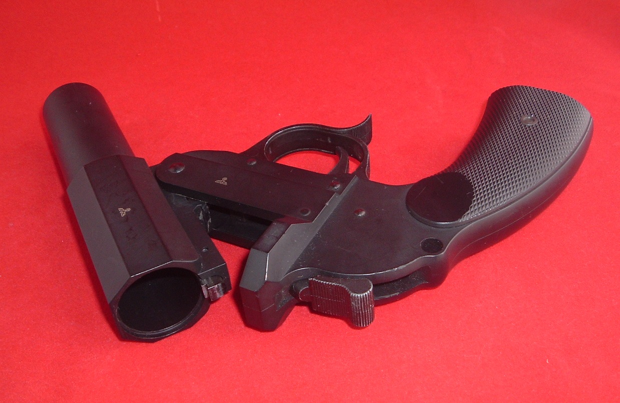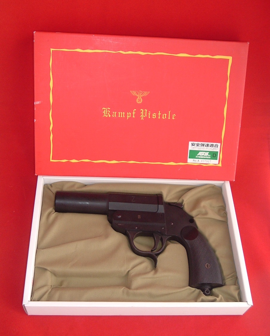 1962年アメリカ映画 監督は名うての「ロジャー・コーマン」! 決して「コーマンコーマン」と気安く連呼するなかれ! なお、この副タイトルと日記本編は一切関係御座いません。 《 HOLIDAY GUN-SMITH 》 おっと、ようやく入手出来ました。 「CAW『Walther Kampf Pistole(ワルサー・カンプピストル)』」 今まで三回ほど「SMOKEY's GUN FACTORY製キットモデルガン」で取り上げた事が御座いますな。 (2012年10月14,15,22日付) 第二次世界大戦時、独逸軍が開発した「信号弾発射銃」を改造した「小型擲弾発射拳銃」です。 今回は「CAW社製完成ガスガン」。 同社の「27㎜ミニモスカート」をセットして、ガスの力で複数のBB弾を発射することが可能。 でも残念ながら今回入手したのは「本体」のみ。 だから安かったんだよ。 (「SMOKEY社」製のカンプピストルも「ミニモスカート」の装着発射は可能) 「SMOKEY's GUN FACTORY社製カンプピストル」との違いハンマーとトリガーが連動している点。 ハンマーをコッキングすることにより「セーフティ」が解除される仕様となっている。 またブレイクオープン時「エキストラクタロッド」が可能な事と、バレル内に「ライフリング」がモールドされている。 それでは「SMOKEY's GUN FACTORY社製カンプピストル」との恒例記念撮影大会。 銃口に丸い「203型大人用榴弾」ダミーが突き刺さっているのが「SMOKEY製」。 「CAW」の方には「Zピストーレ」の名の所以である銃身左横に「Z」の文字の刻印に赤い蛍光塗料によるマーキングが、未だされていないのが判る。 PR 【9月22日の「右を向いても左を向いても『半沢半沢』でイヤんなっちゃうyo♪」日記】 ↓友人の某「つぶやき」にこのコメントをしたら褒められたので、調子に乗りました。 ・「百倍が壊死だ!」 ・「百倍が医師団!」 お医者さんが群れを成して ・「百倍が絵師だ!」 絵描きさんが群れを成して ・「百倍が石段!」 昇り降りが非道く疲れる。 ・「百倍外資だ!」 自国出資資本率0% ・「百倍ライチだ!」 中国の嶺南地方原産のムクロジ科の果樹。 ・「百倍イラチだ!」 関西の物凄く気の短い輩が群れを成して(コレバッカ) ・「百倍が遠視だ!」 近くのモノはよく視えるんだけど ・「百倍が園児だ!」 幼稚園児が群れを(以下略) ・「百倍がHだ!」 助平な男女が群(以下略) ・「百ガイキチだ!」 精神に異常をきたした人が(以下略) ・「百倍碍子だ!」 電線とその支持物とのあいだを絶縁するために用いる磁器製の器具。一般には電柱・鉄塔などに装着される電力用または電信用のものを指す。 それがものすごく大きい(←自分で書いてて、あまりの馬鹿馬鹿しさに思わず笑っちゃいますた) ・「百倍が遺書だ!」 筆者自身にも、もうワケが判りません。 ・「百倍がエイジだ!」 特撮のカミサマ(円谷) 雨に濡れている(三善) ユデタマゴ(坂東) その他いろいろ