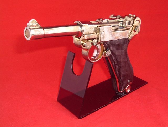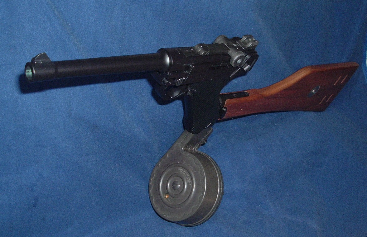 『ルガーP08(Luger P08)』は、ヒューゴ・ボーチャードが開発した大型拳銃ボーチャードピストルを原型にゲオルク・ルガーが改良・開発したドイツ製自動拳銃であり、「P08」はドイツ軍での制式採用名である。 口径は9mm(9mm×19パラベラム弾)を使用。装弾数はシングルカラム・マガジンによる8+1発である。支点で二つに曲がって伸縮する独特なトグルアクション機構の動きから「尺取虫」という通称があった。 《 SUNDAY GUN-SMITH 》 少し前のハナシだけれど、某趣味系中古屋ミリタリーコーナーで木製のストックを入手した。 「ルガーP08用木製ストック」 たぶん TANAKA製P08の4,6インチ用と思われる。 TANAKA社のP08専用木製ストックには「4,6インチ用」と「8インチ用」の二種類がある。 見分けるには「4,6インチ用」には左側中央に「割れ止めボルト&ワッシャー」が埋め込まれている点。 そしてそれが無い「8インチ用」の方が若干長い。 ストックを入手すれば、銃本体も欲しくなるのがマニアの性(SAGA)。 4インチはMGC社金属製モデルガン『ルガーP-08』。 6インチはマルシン社金属製モデルガン『P08マリーネ』。 8インチはTANAKA社樹脂製ガスガン『P08ランゲ・ラウフ(アーティラリー)』 を所持している。 あとオマケにファルコントーイ(現FTC)製ガスガン『ルガーP08アーティラリーカスタム』も持っているが、これはあまり自慢にならない(結構好きなんだけど)。 ちなみにTANAKA社樹脂製ガスガン『P08ランゲ・ラウフ(アーティラリー)8インチ』を入手した際、同時に」「50連スネイルマガジン」と「木ストック」も手に入れたのだが、何故か前持ち主が阿呆で高価な木製ストックをパテ埋めして改悪しており当時は憤慨したものだ。 そこで今回、WE社ガスガン『P08 SIZE:M』を入手してみた。 この台湾製のガスガン、何故に『LUGER P08』と名乗らず単に『P08』と名乗っているのか? 「商標権 本来はパワーのより強力な「HFC22」を使用するが、日本国内での玩具GUNに主に使用される「HFC134a」も使うことが出来る。 機構等TANAKA社ガスガンの完全コピー製品なので、マガジンも互換性がある。 スネイルマガジンもポン付け可能。 っちゅうことはこの「木製ストック」も簡単に取り付けられると目論んでいたのだが、そうは問屋が卸さない。 ガチガチに付かない嵌まらないのであある。 泣きながら鑢(ヤスリ)を片手に削り削って微調整。 先日から切ったり削ったりの手間の掛かる作業ばっかり続くな。 スッタモンダっちゅうか削った切ったの作業と微調整も終え、木製ストックも無事装着出来るようになった。 (ちょい削り過ぎてガタついちゃうけんどテヘペロ)作動も完璧! めでたしめでたし♪ 「ルガーP08」はやっぱ、この6インチ「ネイビーモデル」が最も美しい… 次はこの木製ストックに装着できる専用革ホルスターが欲しいなぁ。 |